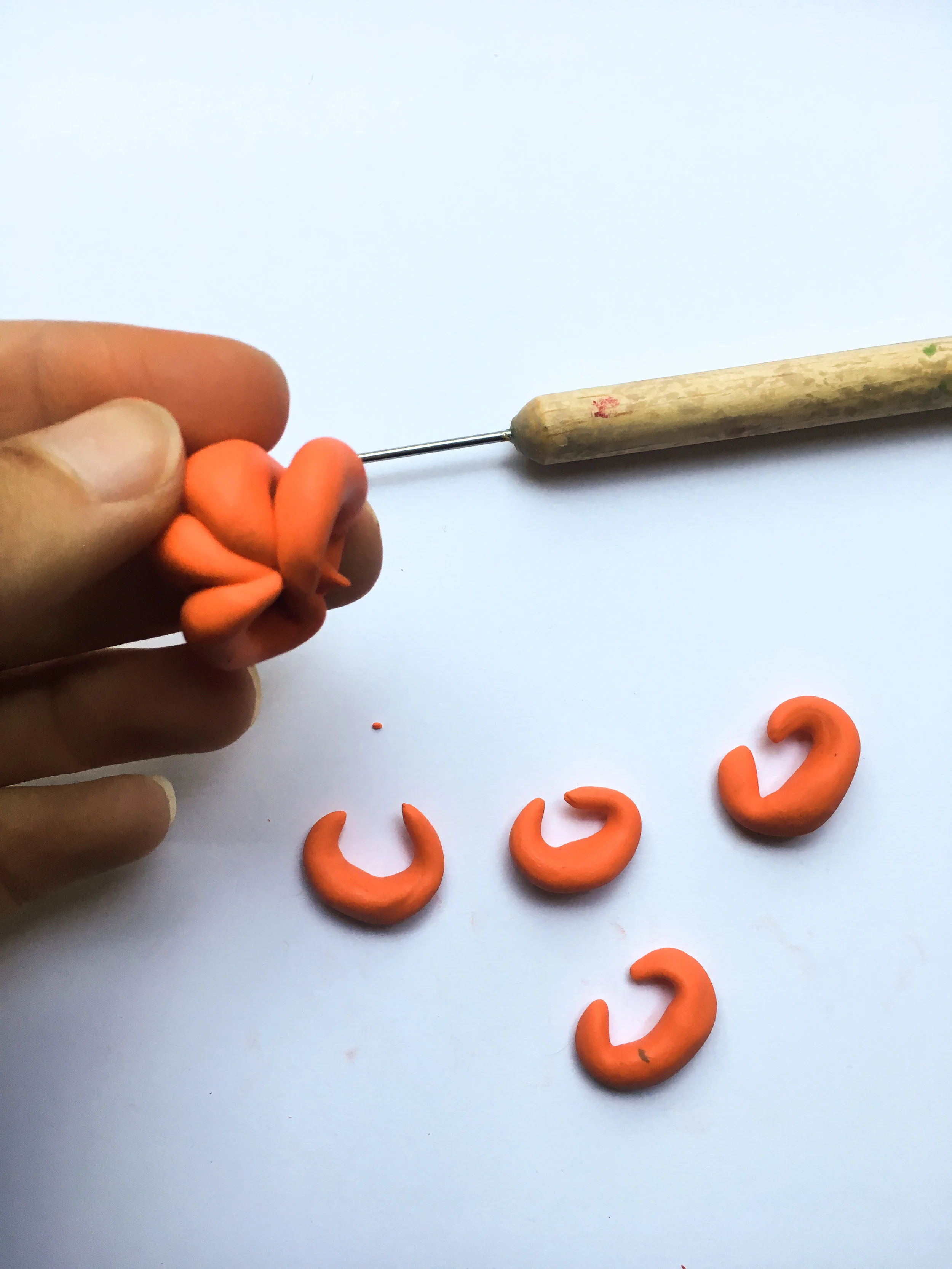 There are two routes to take when creating your pumpkin, you can choose to use orange clay, or white clay ,and add paint later